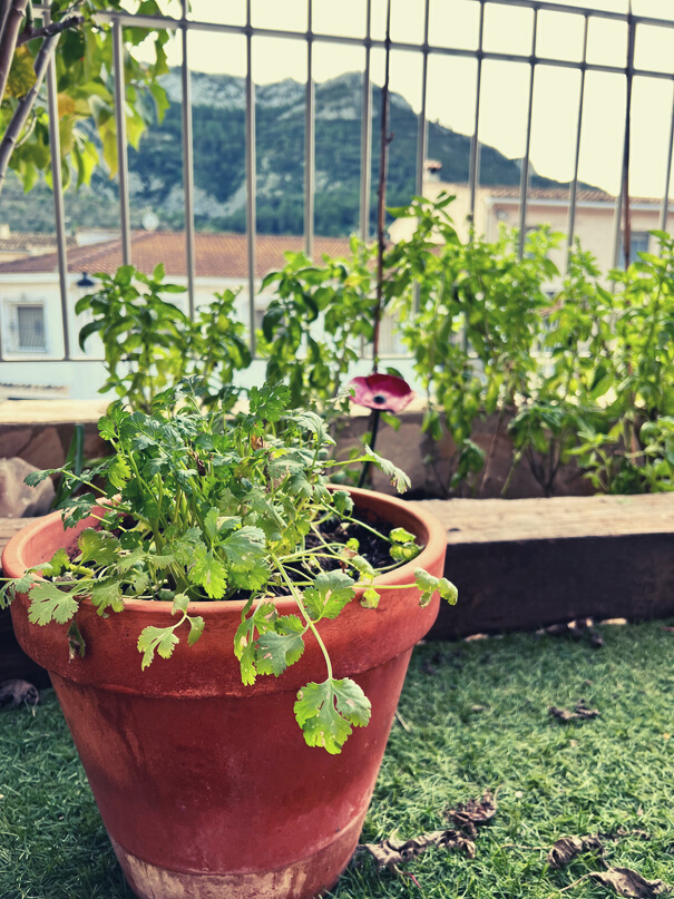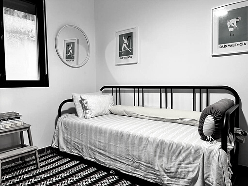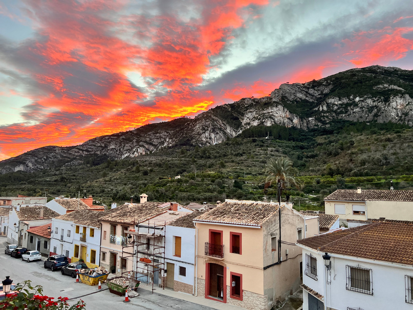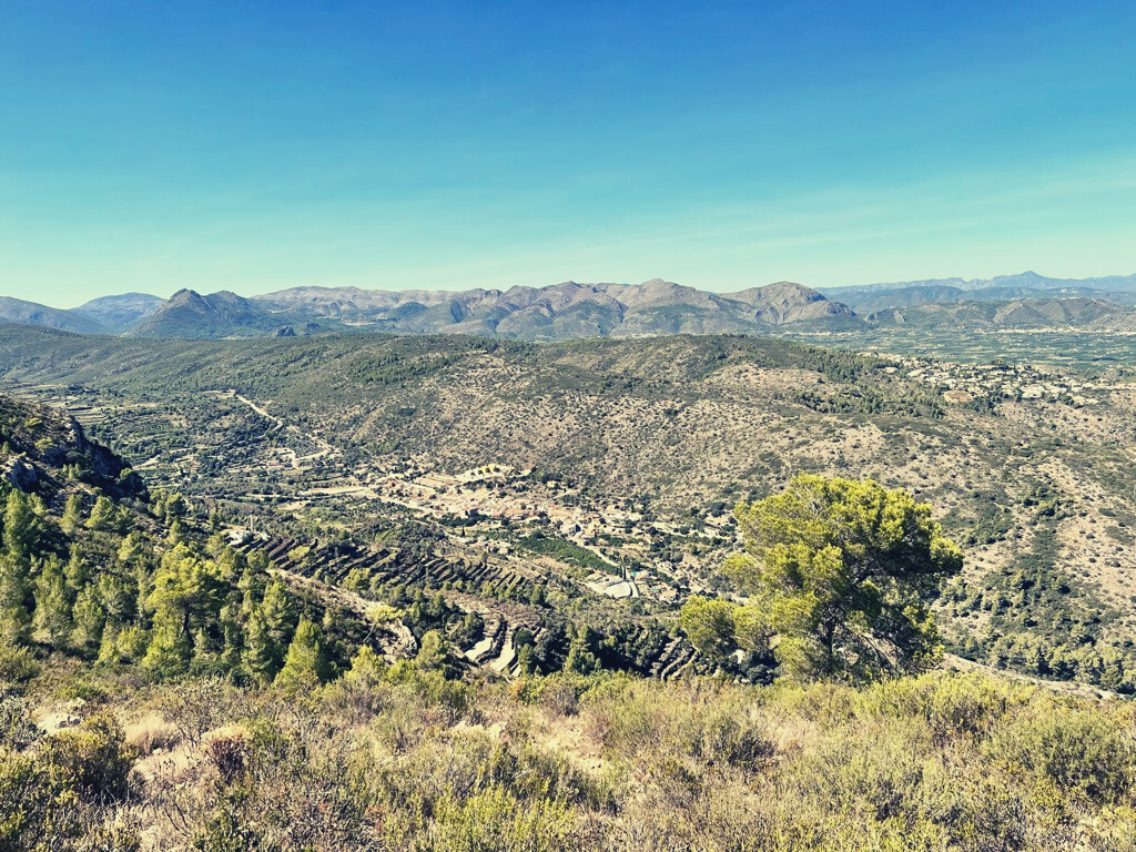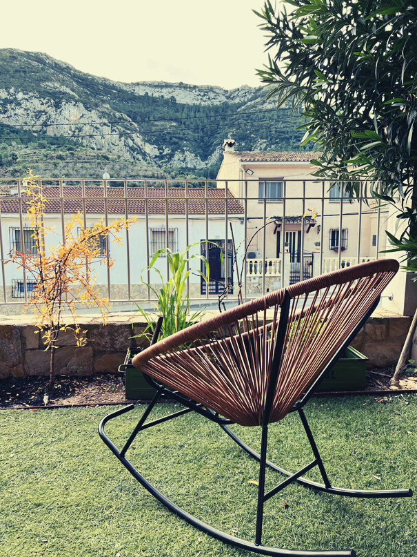 There is an upstairs balcony with views of the mountains, a perfect nook to enjoy a meditative coffee. The Serra del Castellet de la Solana (a limestone ridge that runs from Pedreguer to the pass where shepherds would traditionally cross their herd over into the next valley) serves as a backdrop.