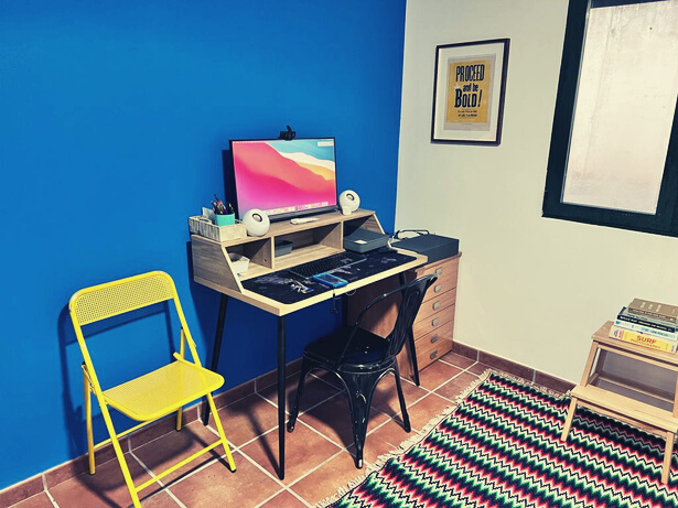 The internet is quick and perfectly suited to remote working. We have purposely set up a number of nooks where one can work standing up, sitting down or looking out over the hills.